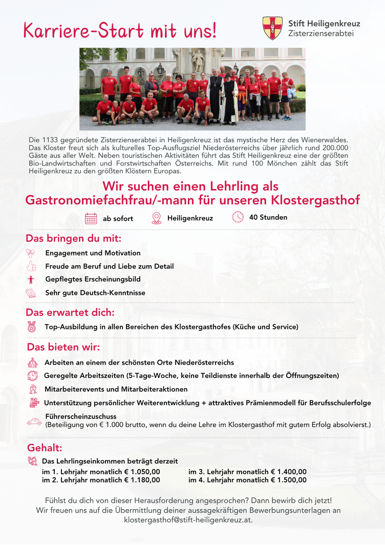 Zur Unterstützung in unserem Klostergasthof suchen wir motivierte Lehrlinge.